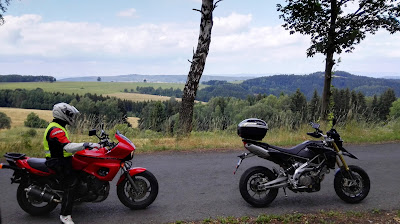 Motomeestel ja -naistel käib kogu planeerimine ilma järgi. Eile õhtul arvasime eilse päeva järgi, et päeval on palav ja õhtul on jahedam. Hommikune ilmateade, aga ütles hoopis vastupidist. Väga hea - see tähendab, et saab sõita! Mäe otsas asuv linn, kus kraanist voolab mineraalvesi ja ümberringi on mäe ja metsad. Idee tärgates tegi Alar kiirelt sõiduteekonna ning oligi plaan tänaseks päevaks valmis.